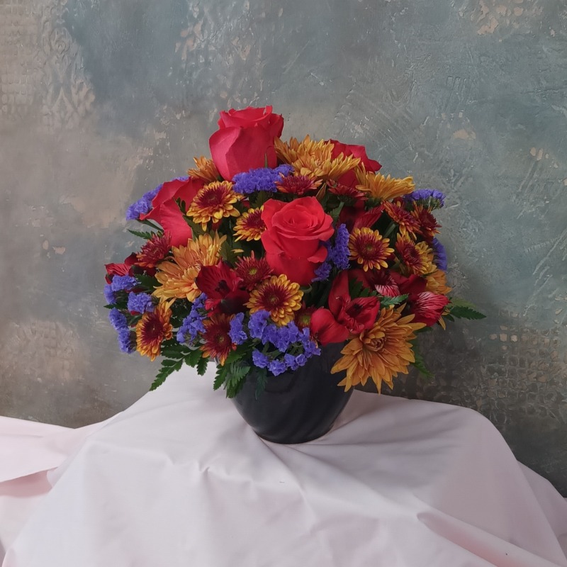 Autumn DelightFill your home with the freshness of fall. With colorful autumn hues set in an elegant black vase, this bouquet draws in the attention of the room with its beauty! Price $79.99Quantity:
