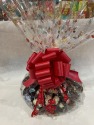 A nice selection of our gourmet chocolates including an assortment of chocolate covered pretzels or raisins, nonpariels, caramels or creams, truffles, and foil covered chocolates all beautifully arranged on a platter. The platter is then wrapped with cellophane and a bow.