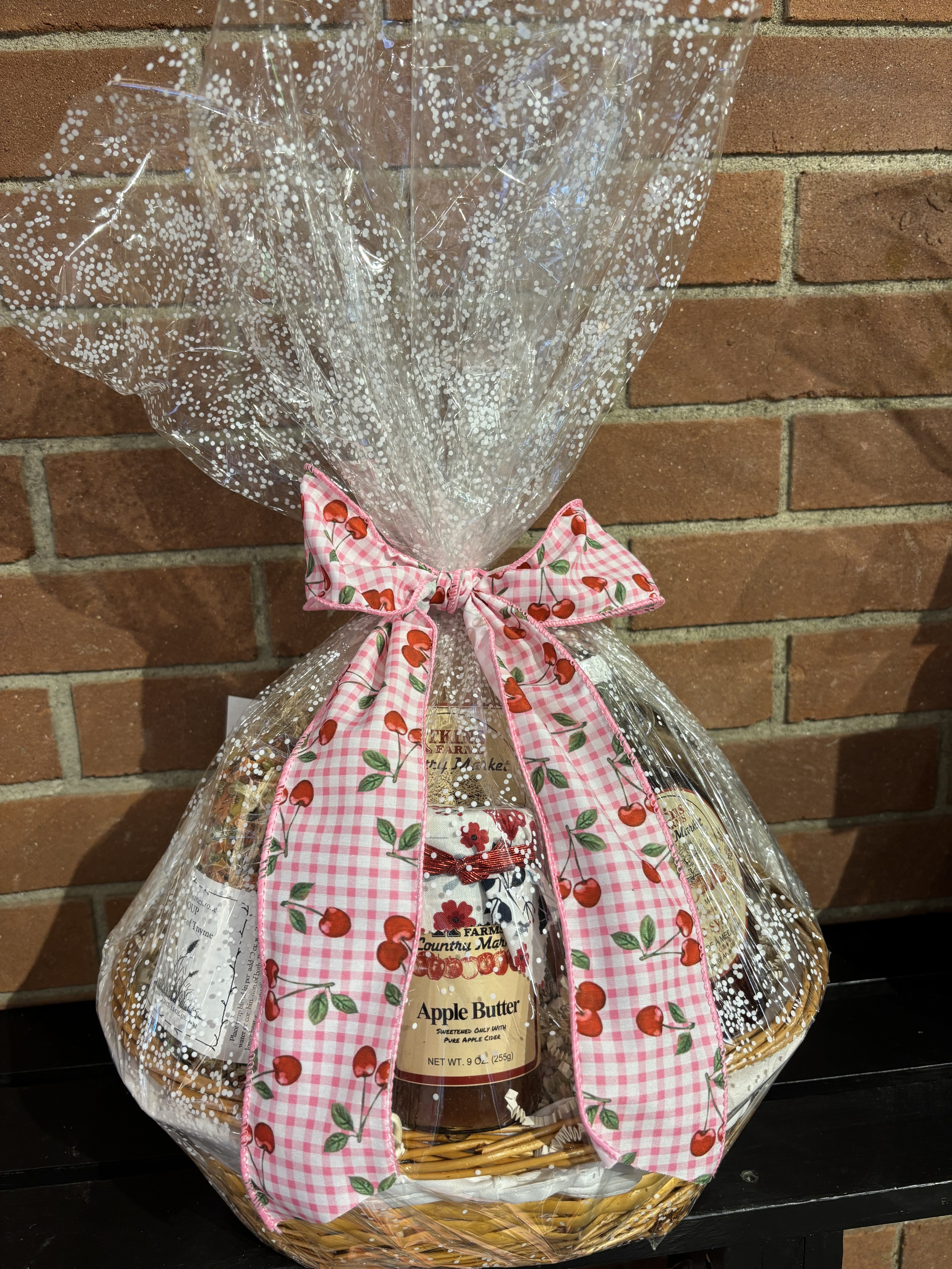 This hearty breakfast basket is overflowing with delicious treats including Atkins Buttermilk Pancake Mix, Atkins Pure Maple Syrup, Atkins Columbian Coffee, Muffin Mix, Little House of Thyme Soup Mix, Crackers, and Atkins Apple Butter.